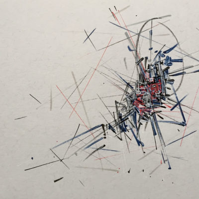 Le dessin abstrait est paradoxalement une pratique plus périlleuse que la réalisation d’un format monumental. La raison : le format tout petit format ne laisse aucune place pour l’erreur gourmande.