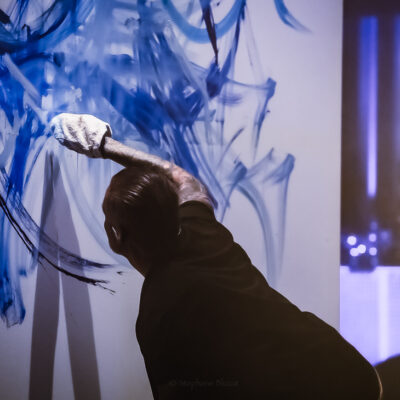 Quelques photos de performance sur toile numérique de 6 mètres réalisée à Paris au Palais D’Iena.