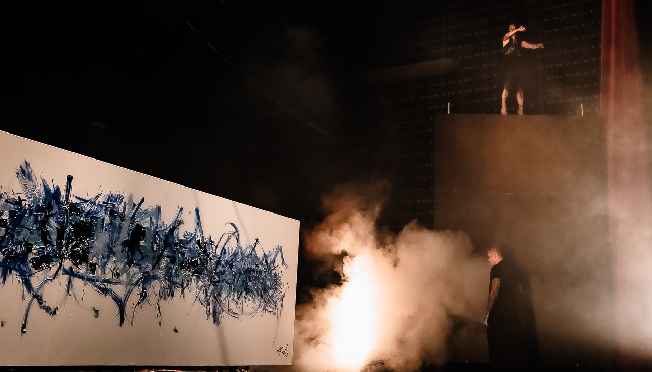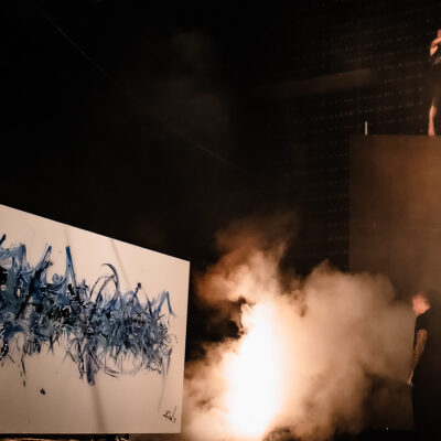 Ainsi, l’artiste-peintre KARLS a composé une œuvre monumentale. Un éclairage de la façade du château et des jeux de lumières sur l’artiste lui ont permis d’effectuer sa performance devant le public. En s’ancrant dans un site historique mais avec le vocabulaire artistique du XXIème siècle, KARLS a marqué l’avenir du lieu.